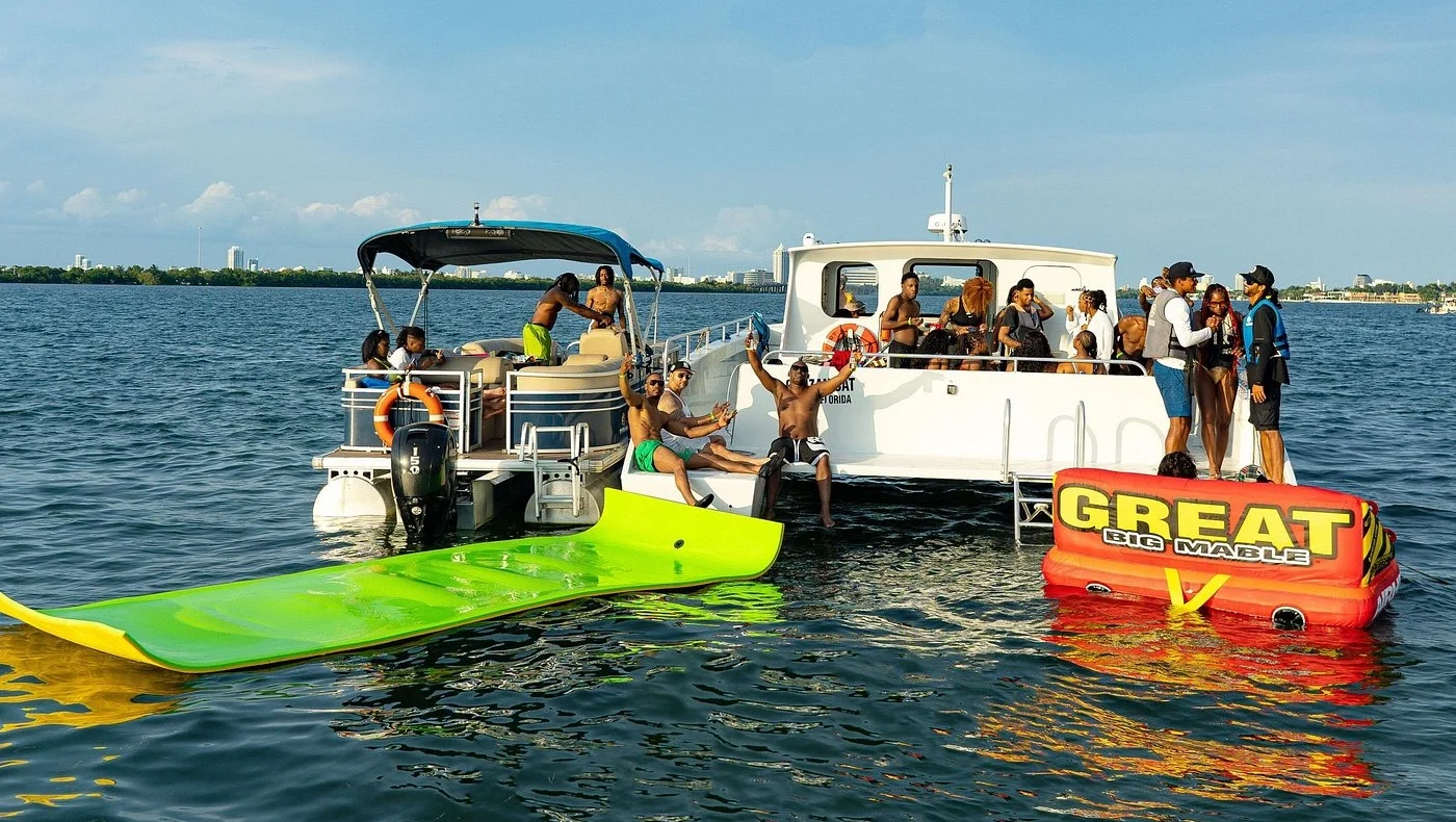 Your charter includes water sports such as Jet Skis, Banana Boat rides, inflatable towables, and floating mats, along with a Bluetooth sound system so you can set the vibe with your own music. With generous capacity and an open, social layout, this catamaran is perfect for birthdays, bachelor and bachelorette parties, and group celebrations where you can truly disconnect and enjoy the moment. The catamaran operates with daily departures. Weekend and peak dates may be subject to higher rates.